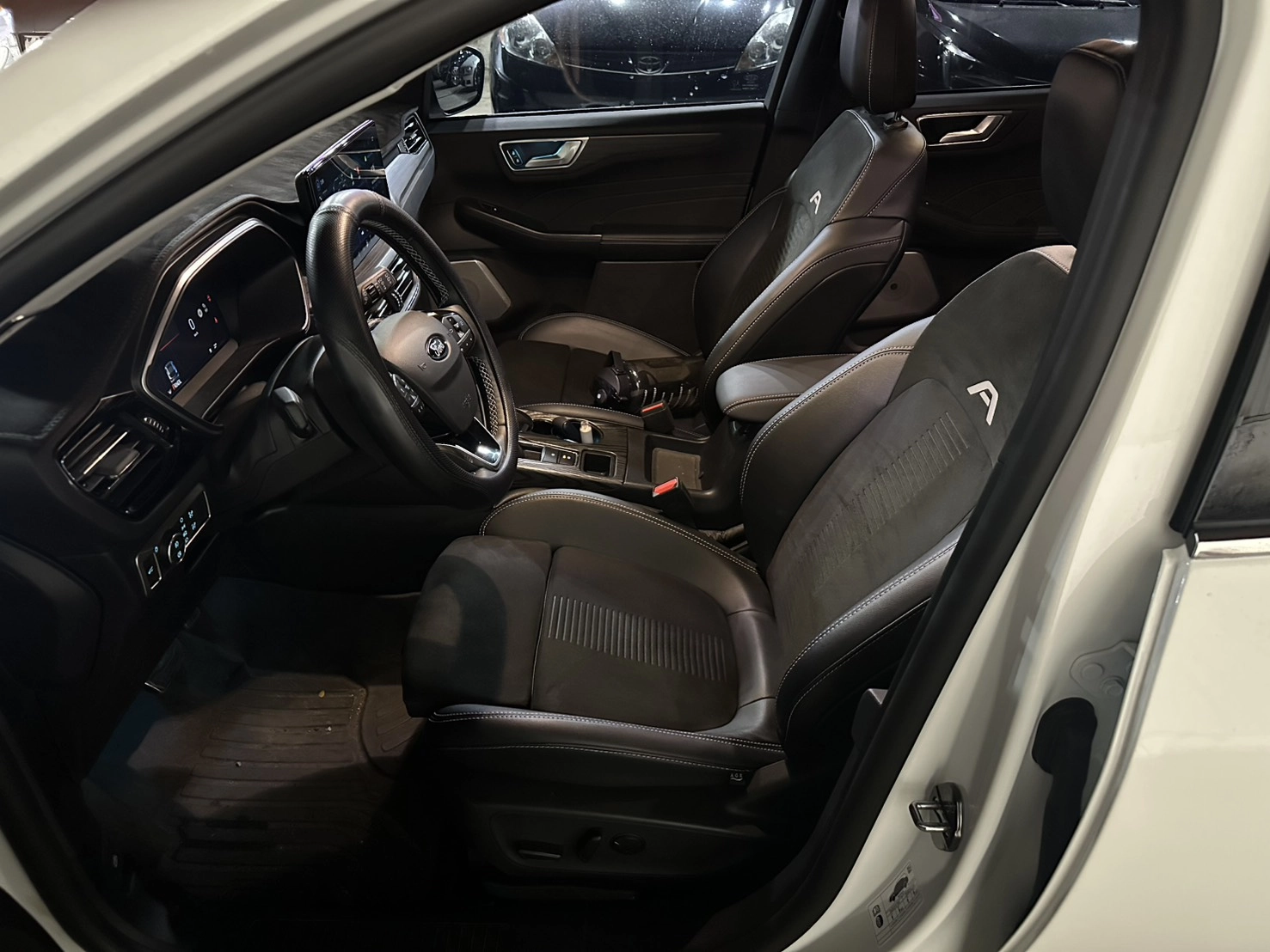 Kuga率同級之先,於車室座艙皆採用雙13吋大螢幕設定。駕駛座前方的13吋全彩數位化儀錶板,導入全新Vision X系統,並支援多重駕駛模式顯示,1.5T Active車型以上車型更追加HUD抬頭顯示器(支援Turn By Turn導航顯示),讓駕駛能輕鬆享有清晰、直覺的沉浸式判讀體驗。至於中控台上方標配的全新13.2吋懸浮全彩螢幕,其搭載的SYNC4娛樂通訊整合系統,同步提供無線及有線Apple CarPlay、Android Auto手機連線功能、以及地圖/緊急救援通訊等多項功能。同時本次Kuga全車系更標配360環景影像系統(2K畫質顯示,內建15種多重視角模式),藉此使駕駛與乘客具備零死角的完整行車視野。