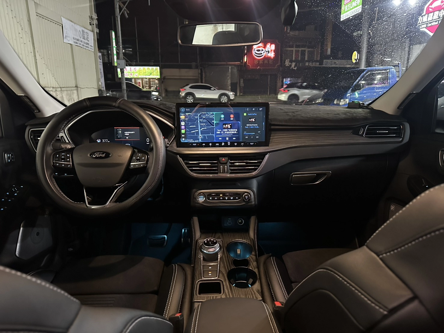 Kuga於1.5T Active及2.0T AWD ST-Line車型,首度導入Ford最新Pixel AI預判型動態照明系統,除原有的Glare Free智慧型防眩光遠光燈功能外,該頭燈組透過126顆LED晶片及可獨立控制的96組Pixel照明元件,造就清晰照明視野(最遠可偵測800公尺外的路況)。Ford Pixel AI預判型動態照明系統提供先進的預判式動態照明功能(原廠內建導航圖資為基礎),系統可依據原廠導航內建之地圖資訊,同步對應即時方向盤轉向角度及前向攝影機偵測範圍,預先輔助車輛前方行駛軌跡進行光束投射,搭配內建的10大AI照明模式(預判式動態照明、Glare Free智慧型防眩光遠光燈、AHB自動遠光燈、靜態光型照明、速域調整照明模式、惡劣天氣、Sign道路標誌照明 (含標誌防眩光)、轉向輔助照明功能、自動水平調整、高識別駐車燈)輔助駕駛及乘客擁有絕佳的「智慧探索」的夜間照明效果。